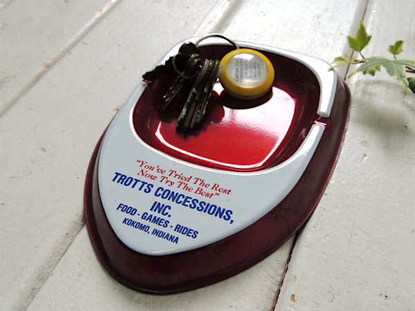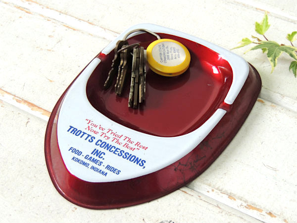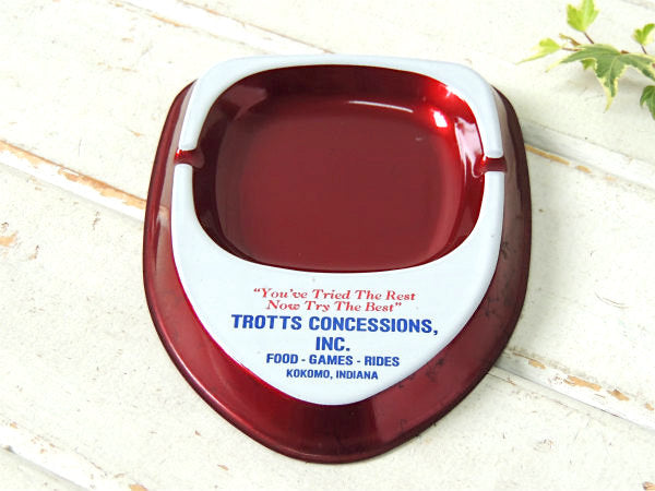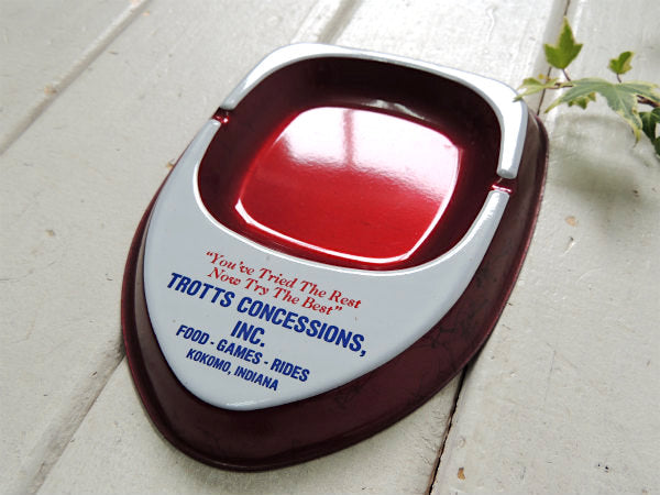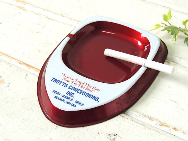 メタルワインレッド×ホワイト”TROTTS CONCESSIONS INC”アドバタイジング ・ティン製・ヴィンテージ・灰皿(アシュトレイ)です。