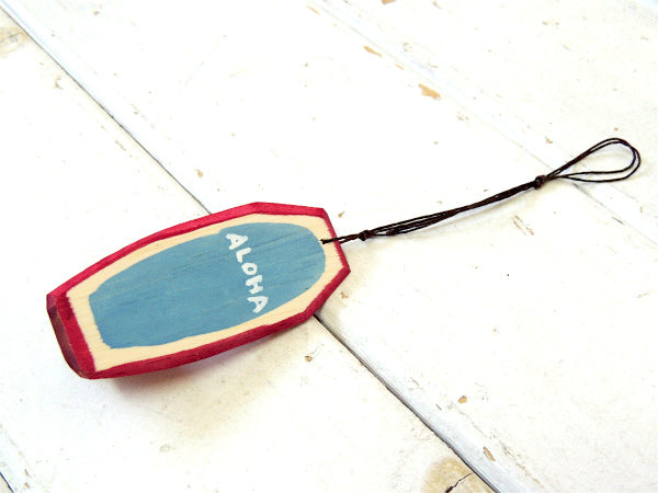 【ALOHA】松田大児・ワインレッド×水色・ハンドメイド・木製・ミニサーフボード・オブジェ
