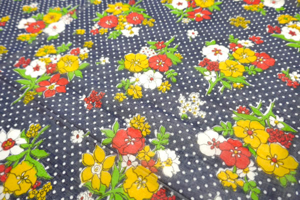 水玉×花柄・カラフル・デッドストック・ヴィンテージ・ファブリック・生地・リメイク・ハンドメイド