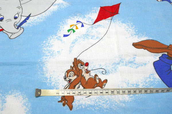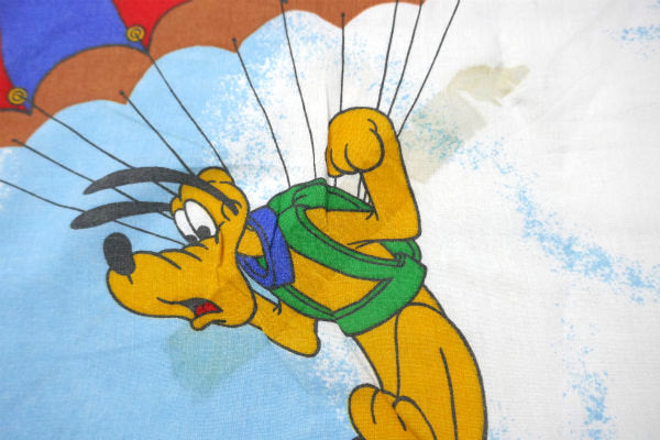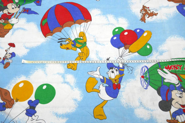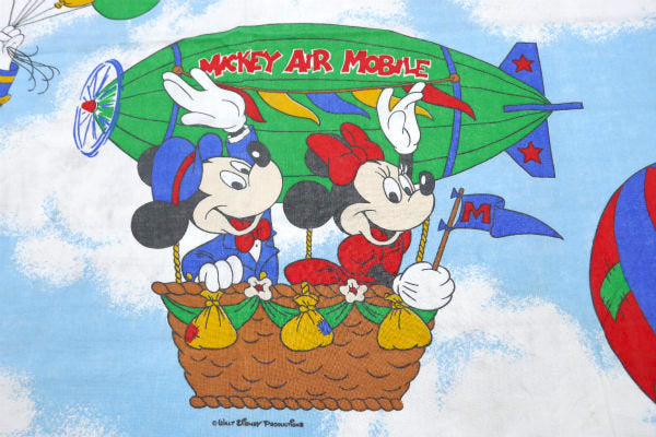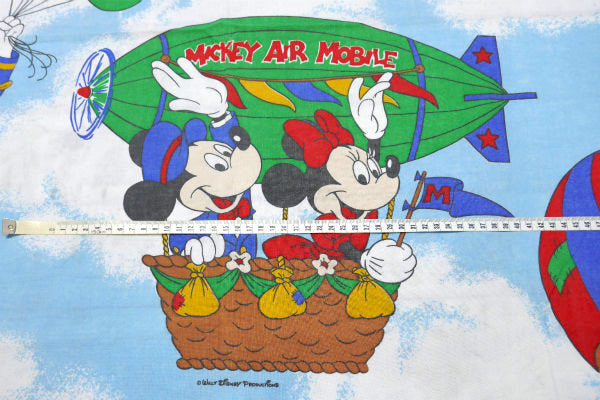 【ミッキー&フレンズー】ディズニー・空飛ぶ飛行船・ヴィンテージ・フラットシーツ(1/2) USA