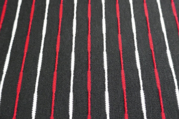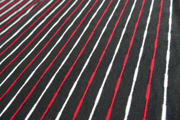 ブラックベースに、白&赤色のストライプ柄です。