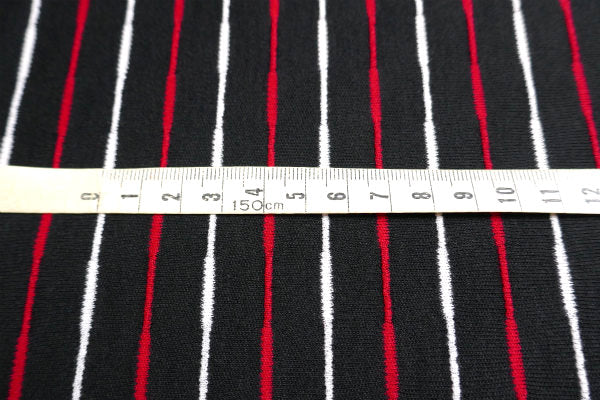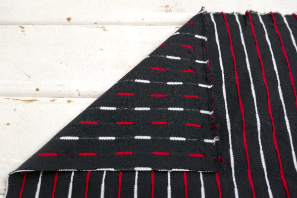 黒×白×赤・ストライプ柄・デットストック・ヴィンテージ・ファブリック・生地・テキスタイル/90×94