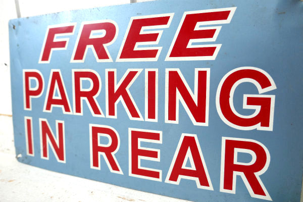 アメリカ西海岸・サンフランシスコで見つけました・・“FREE PARKING IN REAR”パーキング・ヴィンテージ・サイン・看板(案内標示プレート)です。