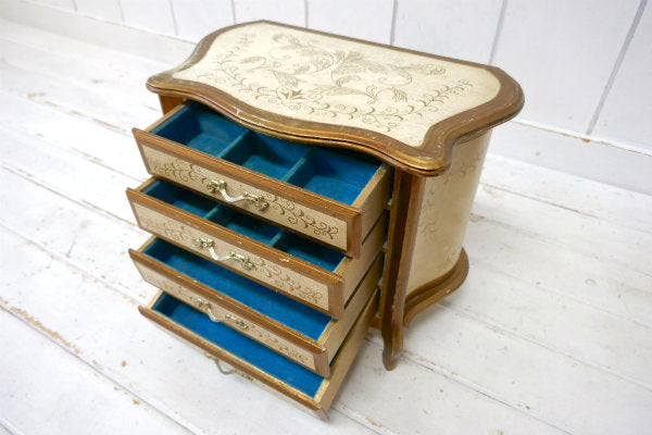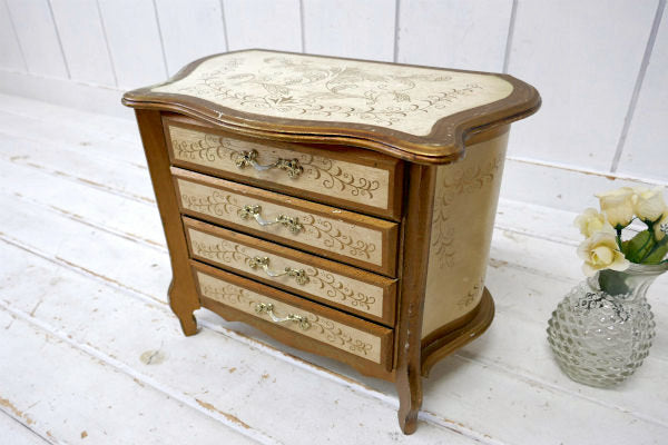 エレガント&ゴージャス・オルゴール付き・木製・アンティーク・ジュエリーケース・宝石箱・卓上チェスト