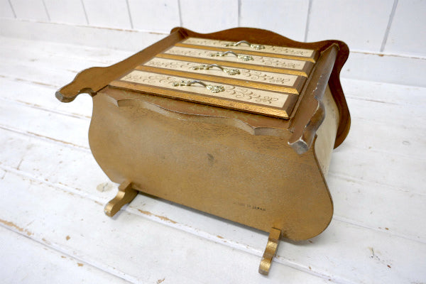 アメリカ中西部・シカゴ郊外で見つけました・・”エレガントなデザイン”木製・アンティーク・ジュエリーボックス・オルゴール&脚付きです。