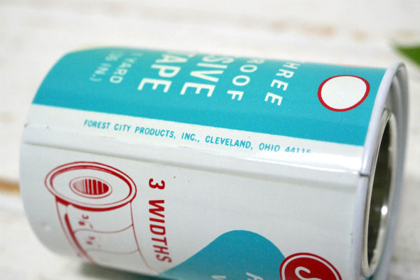 アメリカ中西部・シカゴで見つけました・・『Forest City Products, Inc.,』の【Sentinel Adhesive Tape】小さなティン製・デッドストック未開封・ヴィンテージ・テープ缶です。 医療用の粘着テープが入っていたドーナツ筒形の缶です。 ターコイズブルー×ホワイトカラーの可愛いパッケージです。 側面の全面に【Sentinel HANDY-THREE WATERPROOF ADHESIVE TAPE 1 YARD(36 IN.) / MADE IN U.S.A. /FOREST CITY PRODUCTS, INC., CLEVELAND, OHIO 44115】などの英文字が入っています。 シェルフにちょこんと飾ったり・・お部屋やガレージのディスプレイに・・♪ デッドストック未使用品ですが、片面一部に日焼け跡がございます。 内側にテープが入っております。 画像(写真)でのご判断を宜しくお願い致します。 ■size  :約 W4.5cm×H6.2cm ■コンディション : ★★★★★ ■レターパックプラス¥520対応可(追跡サービスあり・補償なし) ※ご注文の際、お手数ですがメッセージ欄に『レターパックプラス希望』とご記入下さい。新たにお見積もりをメールにてお知らせさせていただきます。