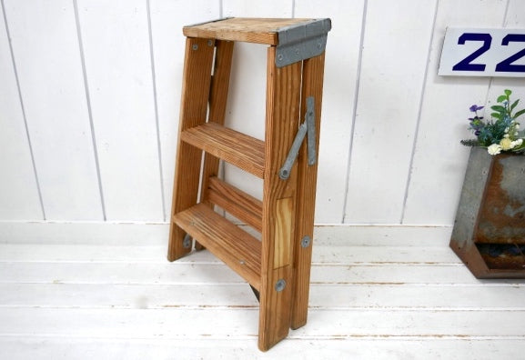 アメリカ西海岸・サンフランシスコで見つけました・・木製のヴィンテージ・ステップラダー(脚立・踏み台)です。
