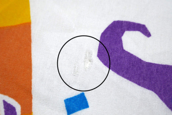 プリントの発色良く、生地もしっかりしておりますが、1箇所にヤブレが見られます。