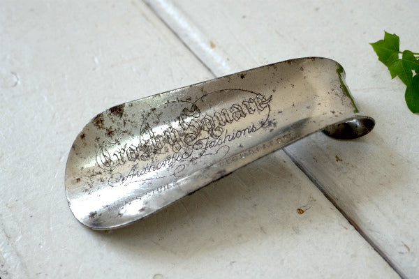 アメリカ西海岸カリフォルニア・サンフランシスコでみつけました・・アメリカ老舗・メンズシューズブランド”Crosby Square"アドバタイジング・ノベルティ(販促品)スチール製・ヴィンテージ・靴べら(シューホーン)です。