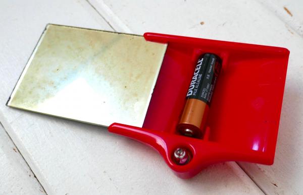 バッテリー交換は、ミラー部分を左右にスライドさせて開閉します。