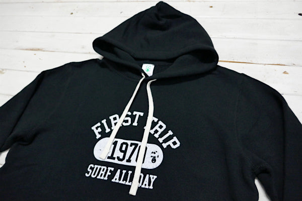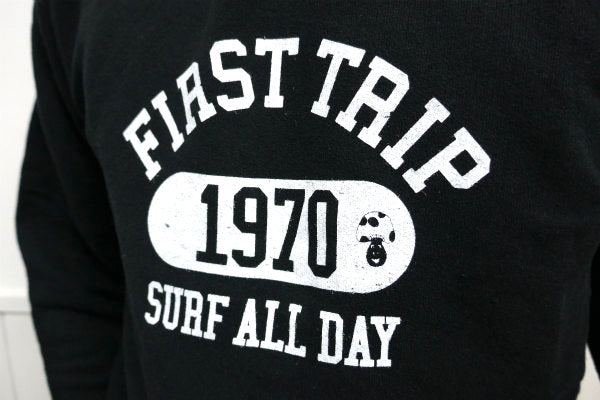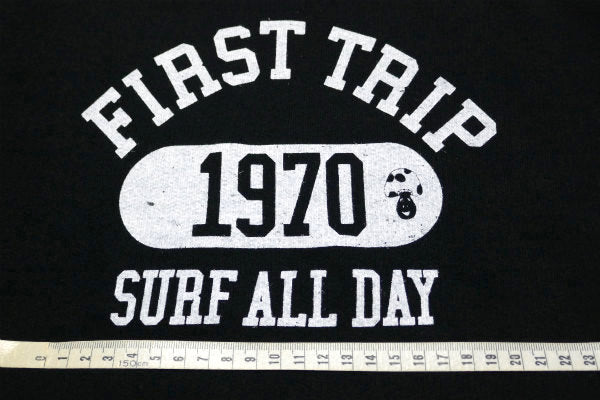 胸フロントに【FIRST TRIP / 1970 /SURF ALL DAY】のロゴプリント(W20.5㎝×H16.5㎝)が入っています。