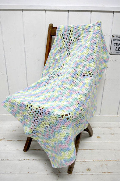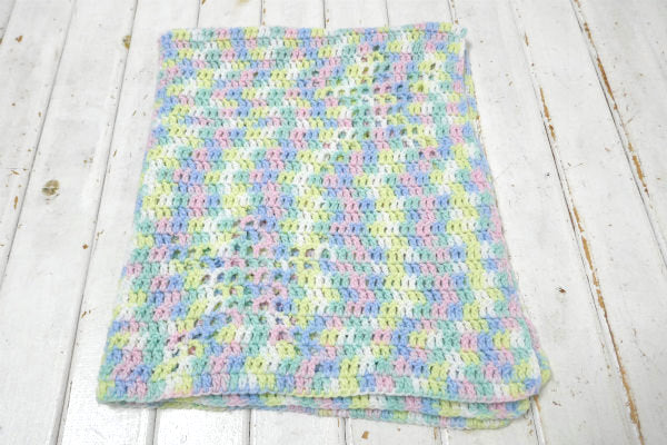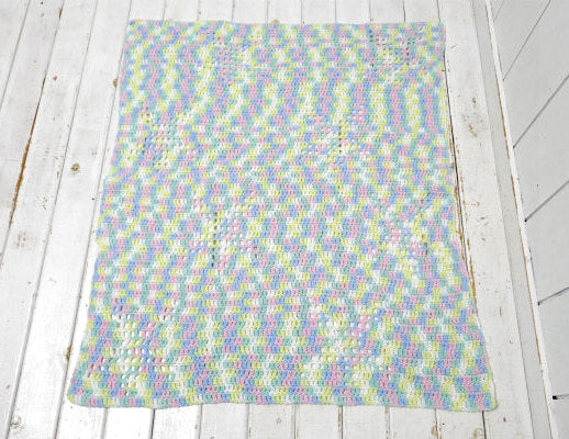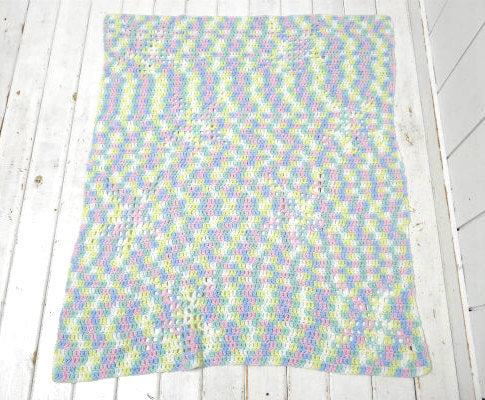星 モチーフ入り 手編みニット パステルカラー ヴィンテージ ベビーブランケット ひざ掛け USA キャンプ&アウトドア