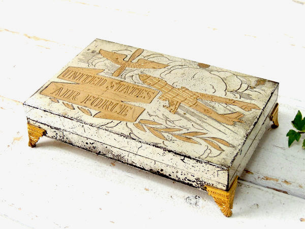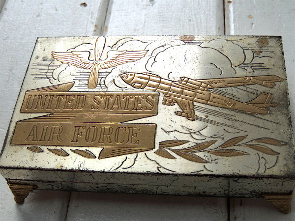 アメリカ中西部・シカゴで見つけてきました・・アメリカ空軍”United States Air Force(エアフォース)”メタル製・脚付き・ヴィンテージ・宝石箱(アクセサリーケース&ジュエリーボックス)です。