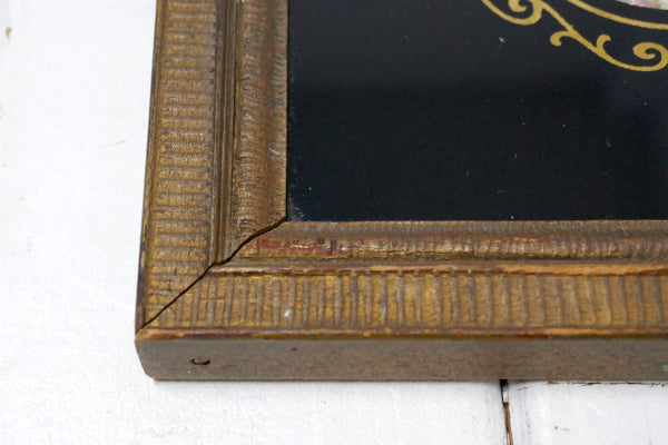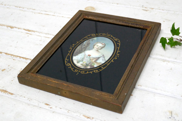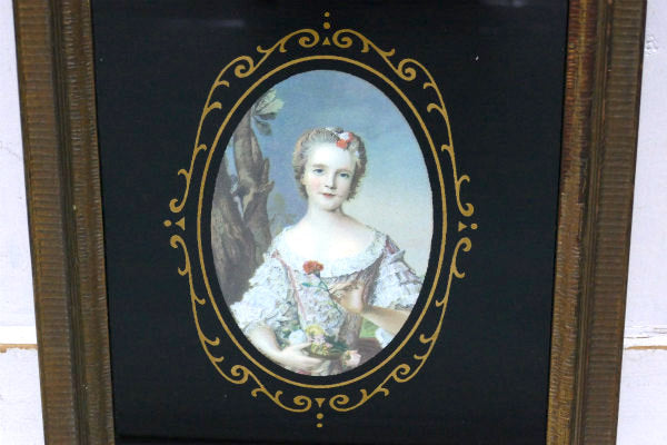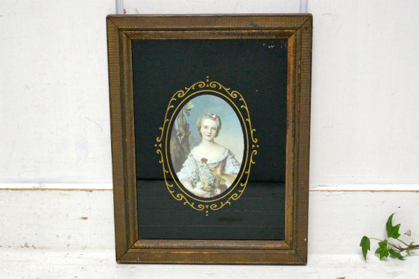 アメリカ中西部・シカゴ郊外の旧家で見つけました・・・ドレスを着た女性がお花を持っている肖像画のアンティーク・ヴィクトリア・ウォールデコ&ミラー(鏡)です。