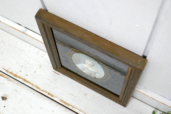 ヴィクトリアン・女性・肖像画&ミラー・木製フレーム・アンティーク・ミラー・インテリア・ウォールデコ