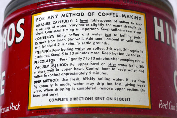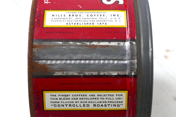 1878年にアメリカ・サンフランシスコで誕生した老舗コーヒーブランド”HILLS BROS COFFEE(ヒルスコーヒー)”ヴィンテージ・ティン缶・コーヒー缶です。