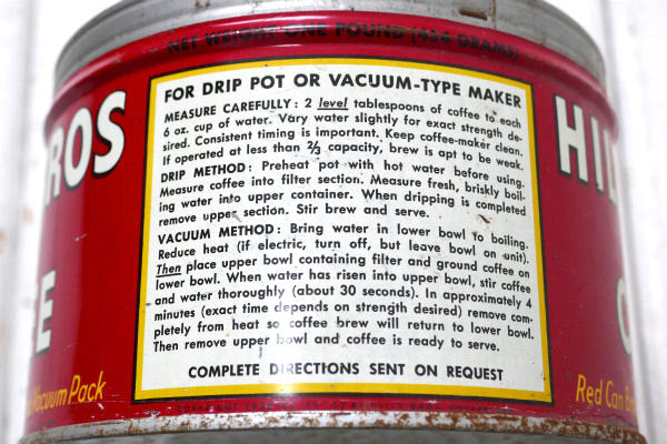1878年にアメリカ・サンフランシスコで誕生した老舗コーヒーブランド”HILLS BROS COFFEE・Red Can Brand(ヒルスコーヒー)”ヴィンテージ・ティン缶・コーヒー缶です。