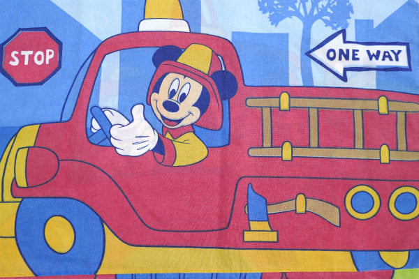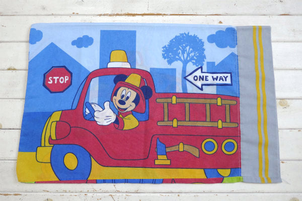 アメリカ西海岸・カリフォルニア州・ロサンゼルスで見つけました・・”ミッキーの消防隊”ヴィンテージ・USED・ピローケース(枕カバー)です。