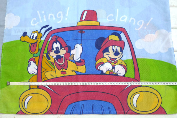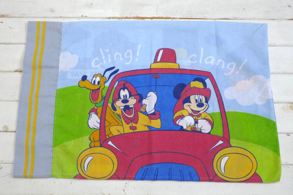 ディズニー・ミッキー 消防隊・プルート&グーフィー・ヴィンテージ・USEDピローケース・枕カバー
