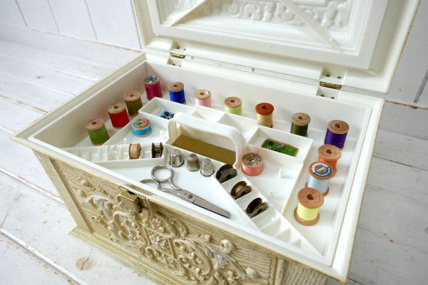 Max Klein・クラシカル・アイボリーカラー・70'sヴィンテージ・ソーイングボックス・裁縫箱
