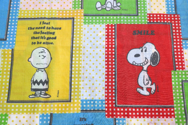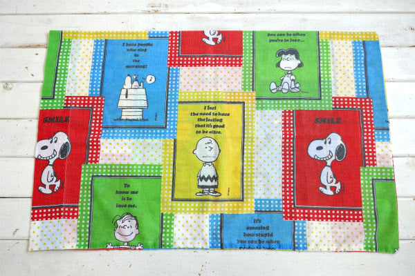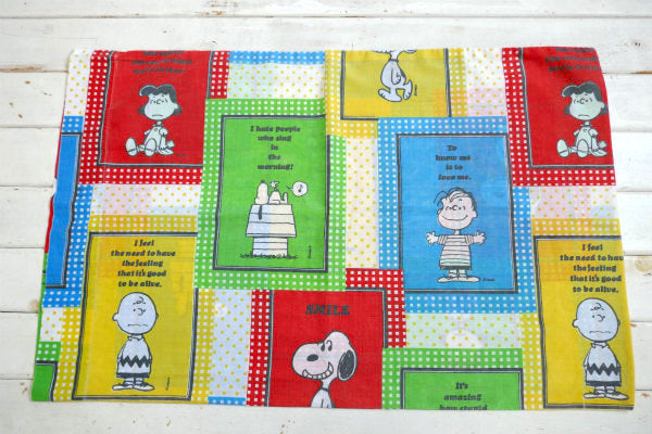 スマイル・スヌーピー・ピーナッツの仲間・パネル柄・70'ヴィンテージ・USEDピローケース・枕カバー