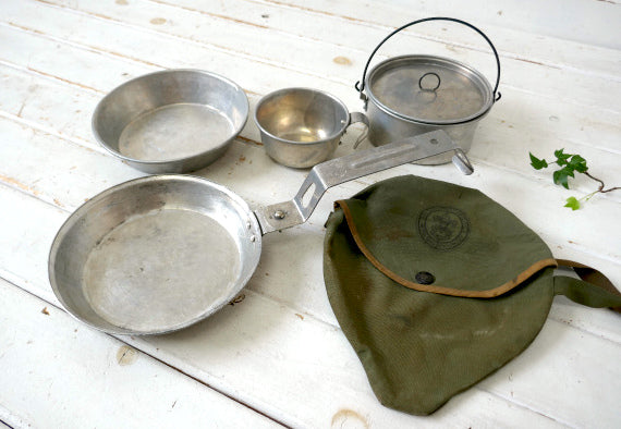 ボーイスカウト NY アルミ製 50's ヴィンテージ メスキット クッカー 専用ケース付き USA
