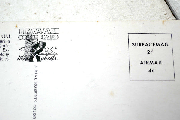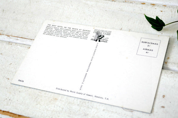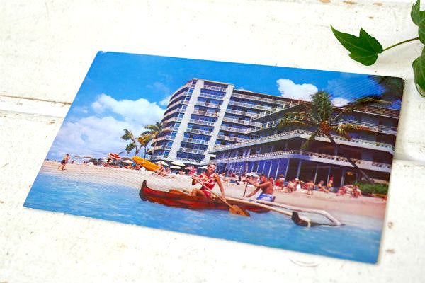 美女 ワイキキビーチ・60's アウトリガーカヌー ヴィンテージ・ポストカード 絵葉書