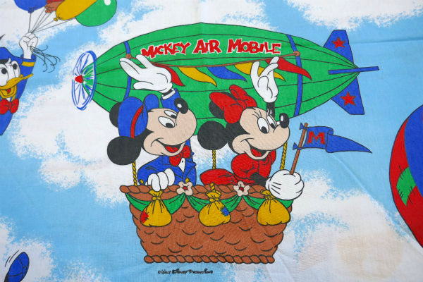アメリカ西海岸、カリフォルニアで見つけました・・大人気柄!『ミッキー&フレンズ』の飛行船柄・ヴィンテージ・USEDフィットシーツです(ツインサイズ)。