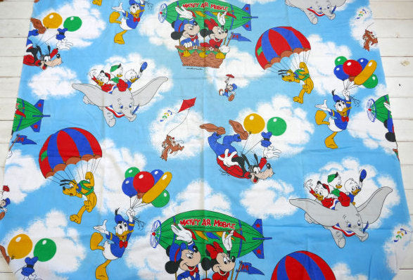 ミッキー&フレンズー ディズニー カラフル 飛行船 ヴィンテージ ユーズドシーツ(ボックスタイプ)