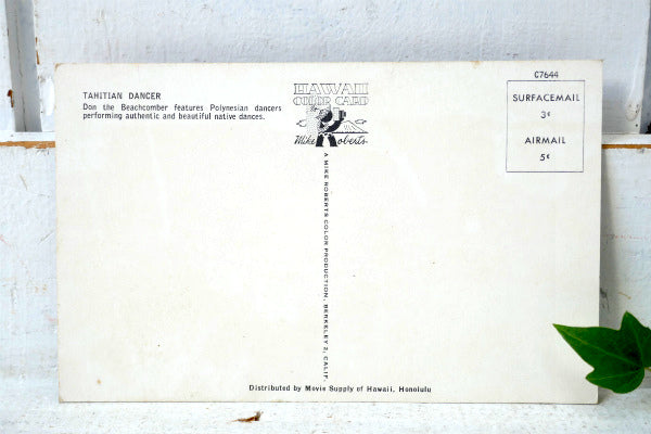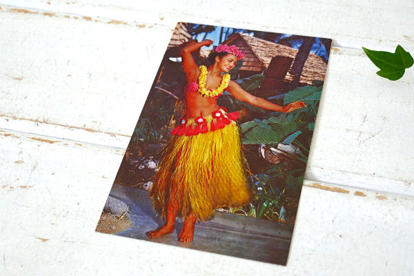 タヒチアン ダンサー 美女 ハワイ ビキニ・衣装・ビンテージ・ポストカード ハガキ・絵葉書・ホノルル