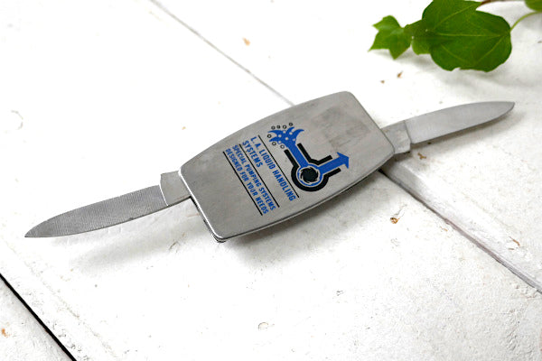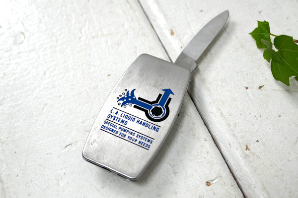 アメリカ西海岸、カリフォルニア ロサンゼルスで見つけました・・歴史あるオイルライター『ZIPPO(ジッポ)社』L.A. LIQUID HANDLING SYSTEMS・ロサンゼルス アドバタイジング・ヴィンテージ・マネークリップ&折り畳み ポケットナイフです。 【L.A. LIQUID HANDLING SYSTEMS SPECIAL PUMPING SYSTEMS DESIGNED FOR YOUR NEEDS】機会ロゴ&英字が入っております。 ナイフ&ヤスリの2機能が備わった、折りたたみ式のポケットナイフ&マネークリップになります。 ナイフ根本に【ZIPPO BRADFORD PA USA】、ヤスリ根本に【ZIPPO BRADFORD PA USA】と刻印が入っております。 キャンプなどのアウトドア・・普段使いやコレクションなどに・・♪ 経年により多少のスリキズ等ございます。 紙幣はついておりません。 画像(写真)でのご判断を宜しくお願いします。 ■size:約 W3.0cm×D5.3cm×H0.8cm ■コンディション : ★★★★☆ ■レターパックライト¥370対応可(追跡サービスあり・補償なし) ※ご注文の際、お手数ですがメッセージ欄に『レターパックライト希望』とご記入下さい。新たにお見積もりをメールにてお知らせさせていただきます。