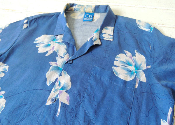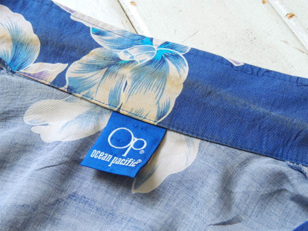 OP オーシャン パシフィック ブルー ヴィンテージ アロハシャツ 古着 S サーフィン