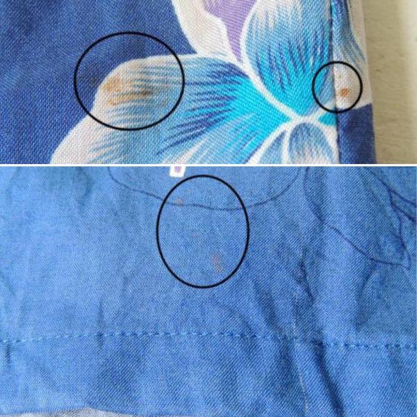襟元や右裾・背面右サイドにヨゴレが見られます。