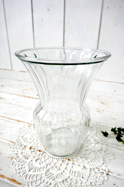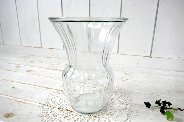 アメリカ西海岸、カリフォルニア サクラメントで見つけました・・”エレガントなシンプルデザイン”クリアガラス製・ヴィンテージ・フラワーベース(花瓶・花器)です。