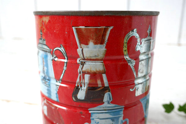 コーヒーメーカー・ケメックス パーコレーター サイフォン柄・ビンテージ・ティン缶 コーヒー缶 USA