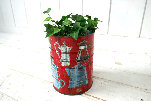 アメリカ西海岸、カリフォルニア、ロサンゼルスで見つけました・・コーヒーメーカー・総柄・ヴィンテージ・ティン缶(コーヒー缶)です。