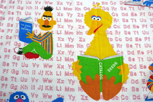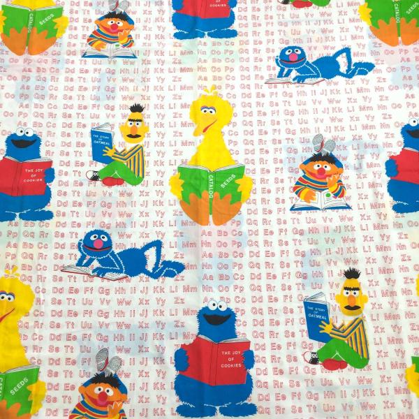 セサミストリートの仲間たち アルファベット&読書柄 ヴィンテージ ユーズドシーツ ハーフシーツ(1/2) USA