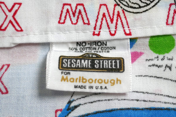 アメリカ西海岸・カリフォルニア州、サンタクルーズで見つけました・・『セサミストリートの仲間たち』のアルファベット&読書柄・ヴィンテージ・USEDフラットシーツ(ハーフサイズ)です。