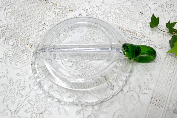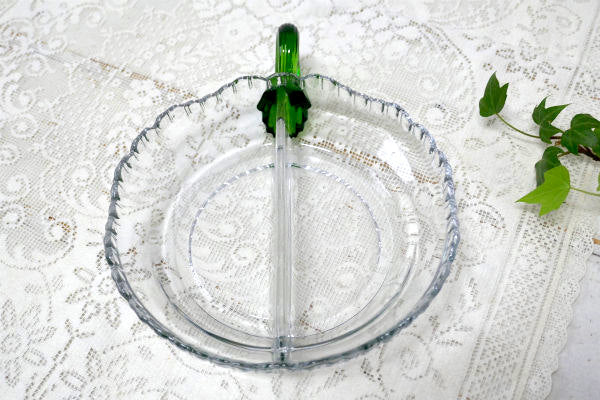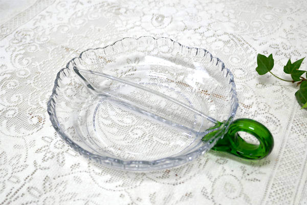 グリーン ハンドル付き 2コンパートメント ヴィンテージ トレイ キャンディトレイ 皿 食器 USA