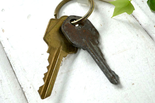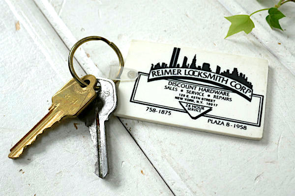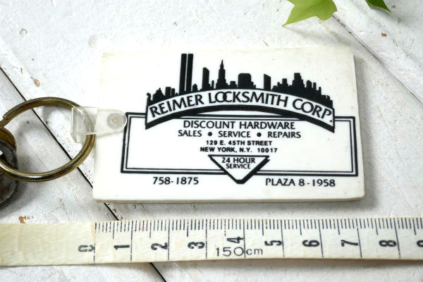 ”REIMER LOCKSMITH CORP・DISCOUNT HARDWARE・NY 10017” アドバタイジング ・ヴィンテージ ・キーホルダー&古鍵 2本付きです。