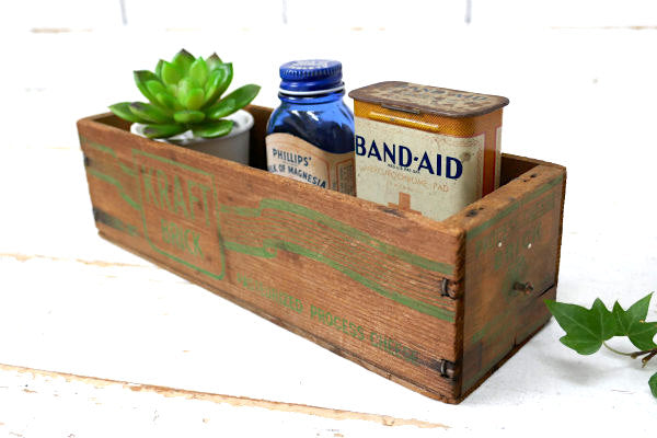 アメリカ合衆国で見つけました・・1903年にイリノイ州で誕生した歴史ある食品メーカー『クラフト社・KRAFT BRICK』の木製・アンティーク・チーズボックスです。