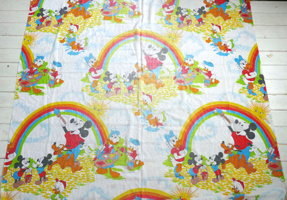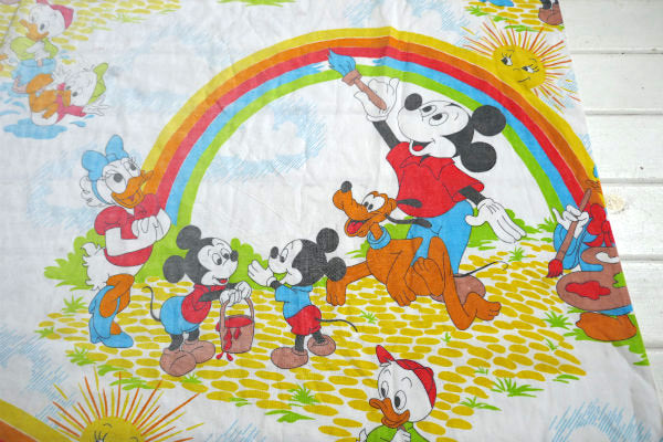 ミッキー&フレンズ カラフル レインボー柄 ヴィンテージ ユーズドシーツ(ボックスタイプ) USA