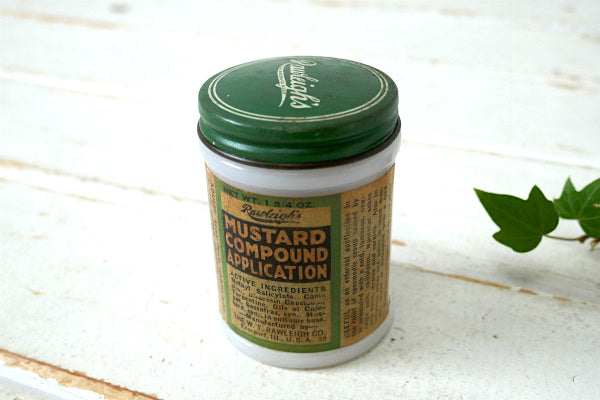 MUSTARD COMPOUND APPLICATION・薬瓶・ヴィンテージ・ミルクガラス瓶・メンソールです。