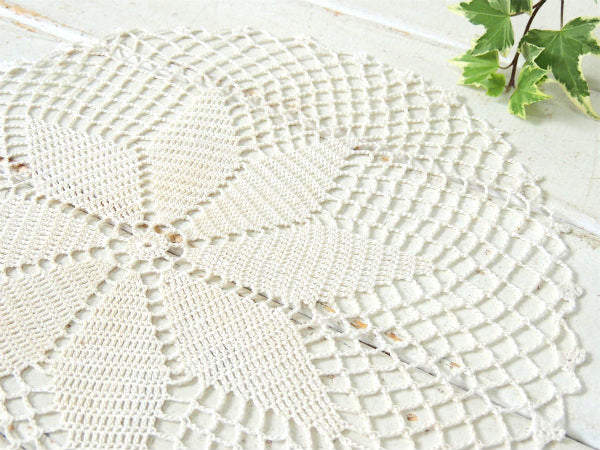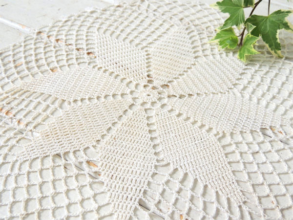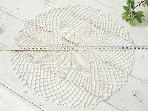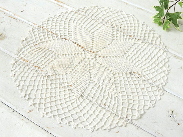 オフホワイト クロシェレース 花柄 デッドストック未使用 アンティーク ドイリー ハンドメイド