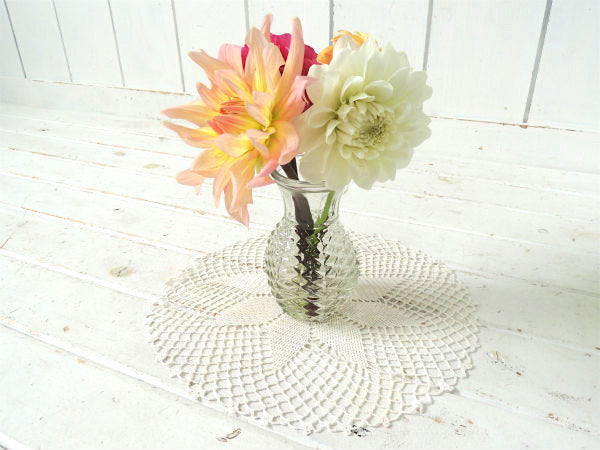 アメリカ西海岸、カリフォルニアで見つけました・・フラワーモチーフのデッドストック未使用のクロシェレース・アンティーク・ドイリーです。