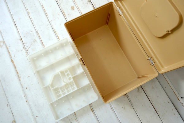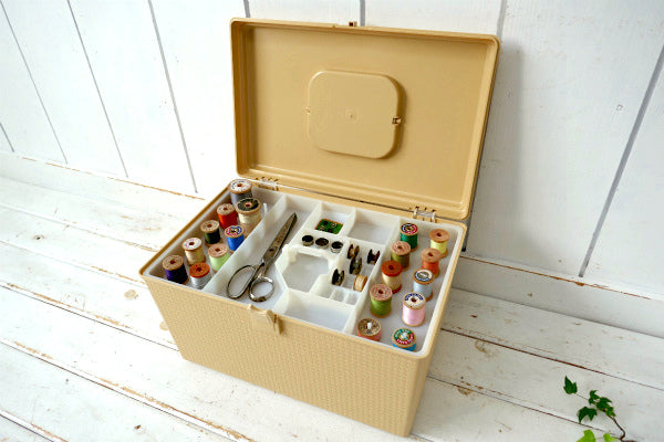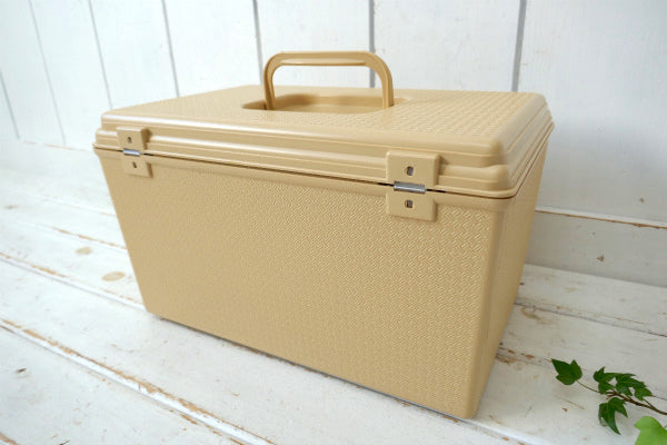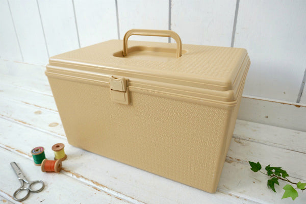 WILSON ベージュ バスケット柄 2段式 ヴィンテージ ソーイングボックス 裁縫箱 ナチュラル