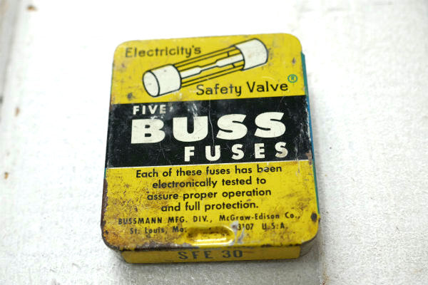 BUSS FUSES ガラス管ヒューズ SFE 30 ヴィンテージ・ヒューズ缶 ティン缶 USA
