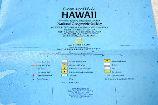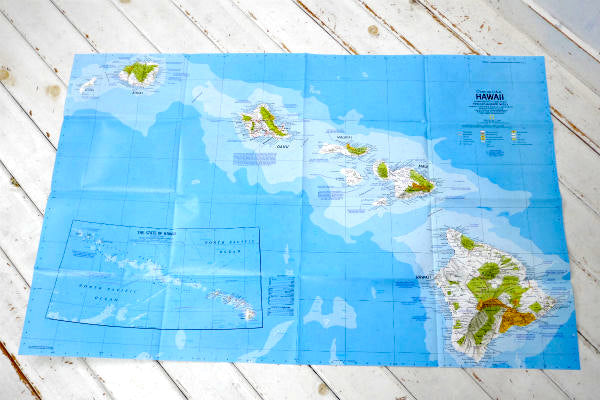ハワイ HWAWAII オアフ島 マウイ島 カウアイ島・80s ビンテージ・マップ・地図 店内装飾