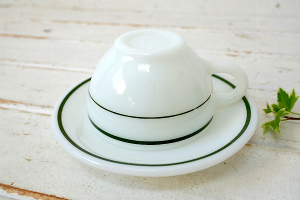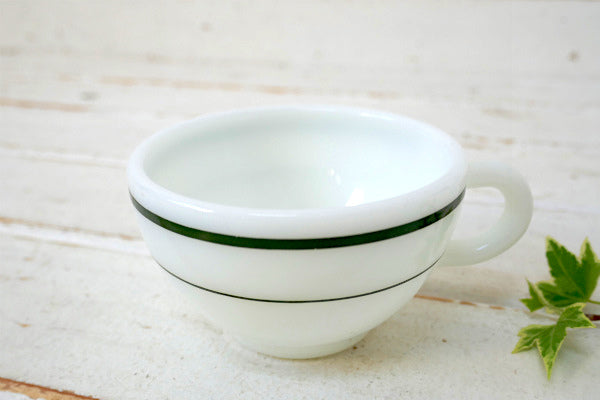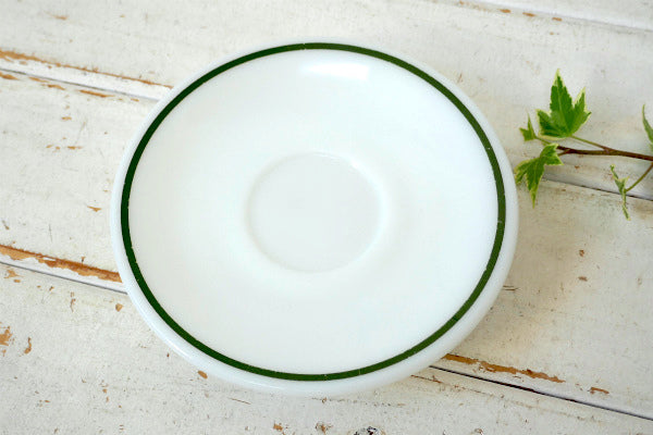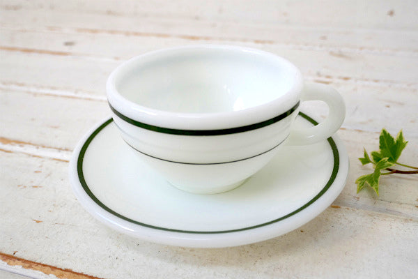 アメリカ西海岸・サクラメントで見つけました・・『オールドパイレックス×コーニング』のミルクガラス製・グリーンライン・ヴィンテージ・カップ&ソーサーです。