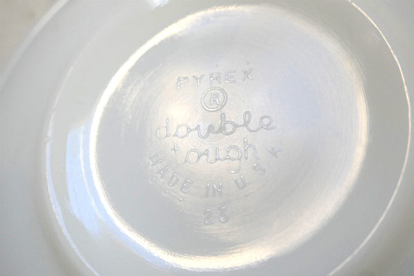 バックスタンプは、カップ裏は【PYREX ® BRAND Tableware by CORNING MADE IN U.S.A. 701-32】、ソーサー裏は【PYREX ® double tough MADE IN U.S.A. 23】です。